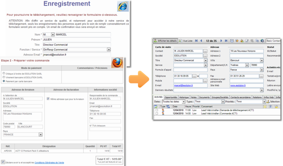 DirectWeb intègre ces informations directement dans Act! et affecte une